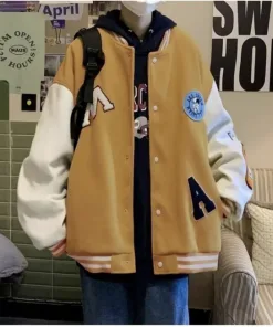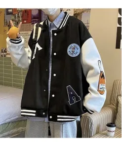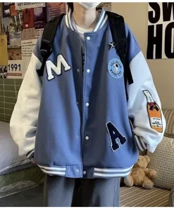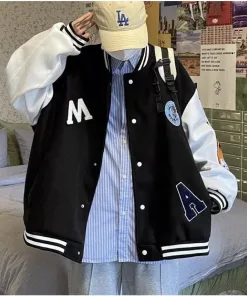 - Tên sản phẩm: Áo Khoác Bomber Nỉ Ngoại In Chữ M A Phối Tay Trắng – HTM Fashion