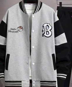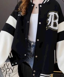 Tên sản phẩm: ÁO KHOÁC BOMBER UNISEX NAM NỮ VẢI NỈ IN CHỮ B PHỐI SỌC BO VIỀN UT63 – GOLDEN DREAM