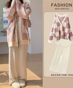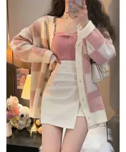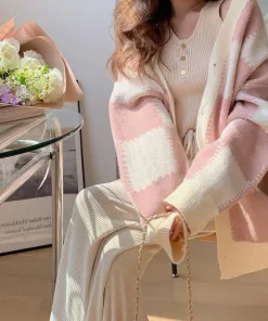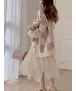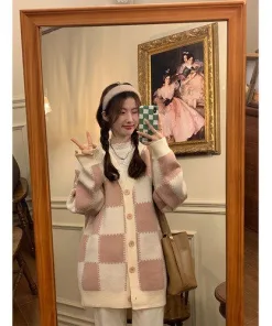 - Tên Sản phẩm: Áo khoác cadigan caro hồng nữ