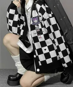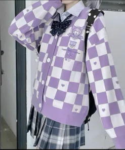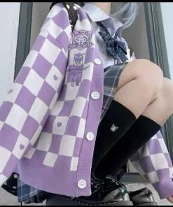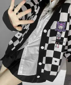 Tên sản phẩm: ÁO KHOÁC CADIGAN CHẤT NỈ NGOẠI HỌA TIẾT CARO – KIM