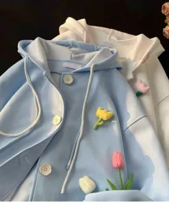 Áo Khoác CADIGAN Có Nón Dây Rút Logo Thêu Hoa Họa Tiết Form Rộng Phối Theo Phong Cách Sành Điệu Và Xịn Hot Trend HTM- FASHION