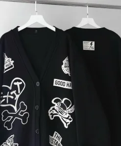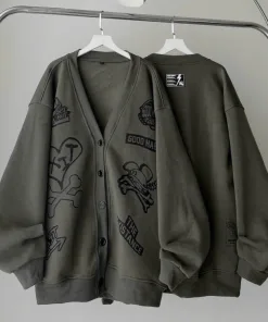 Tên sản phẩm: ÁO KHOÁC CADIGAN VẢI NỈ IN HÌNH XƯƠNG CHÉO NAM NỮ ĐỀU MẶC ĐƯỢC TP73 – GOLDEN DREAM