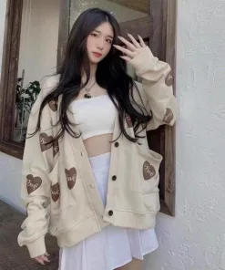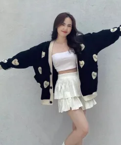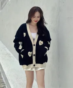 - Tên Sản phẩm: Áo khoác cardigan trái tim toàn thân nỉ nữ