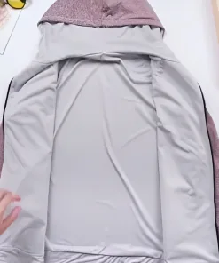 Mặt trong là vải hạt cườm màu xám, tăng cường độ thông thoáng, chỉ cần vài giây lột mặt áo, quý khách hàng đã có ngay 1 chiếc áo khoác khác biệt