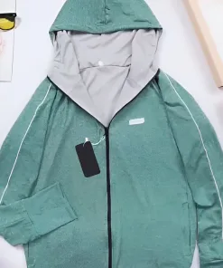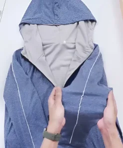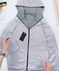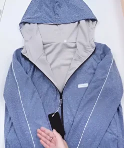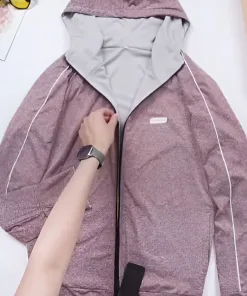Áo có 2 túi có khóa kéo tiện lợi, phần mũ sâu, dày, chống nắng hiệu quả