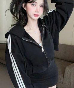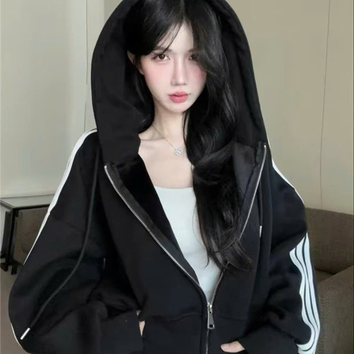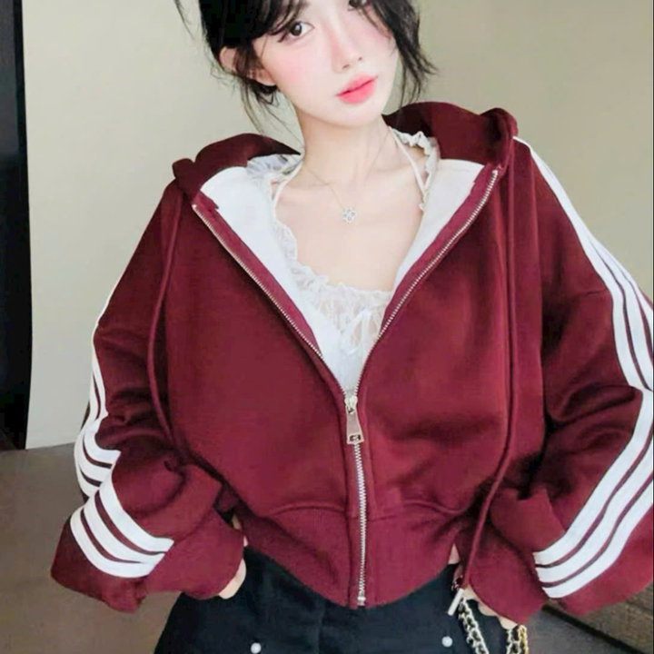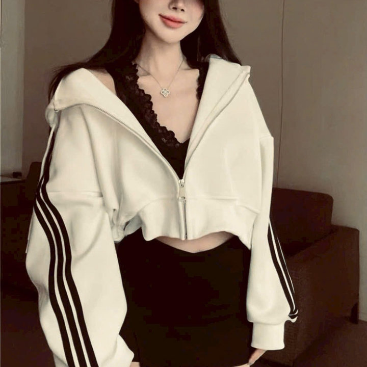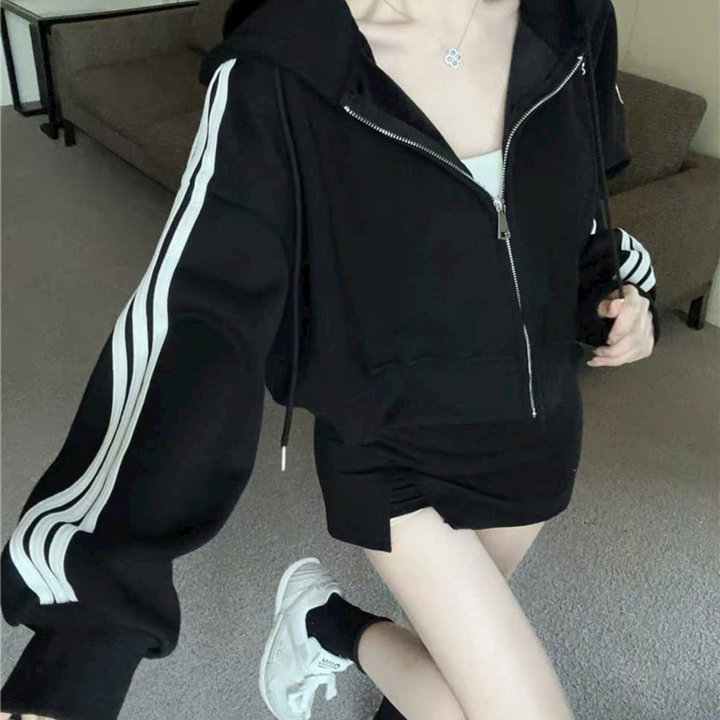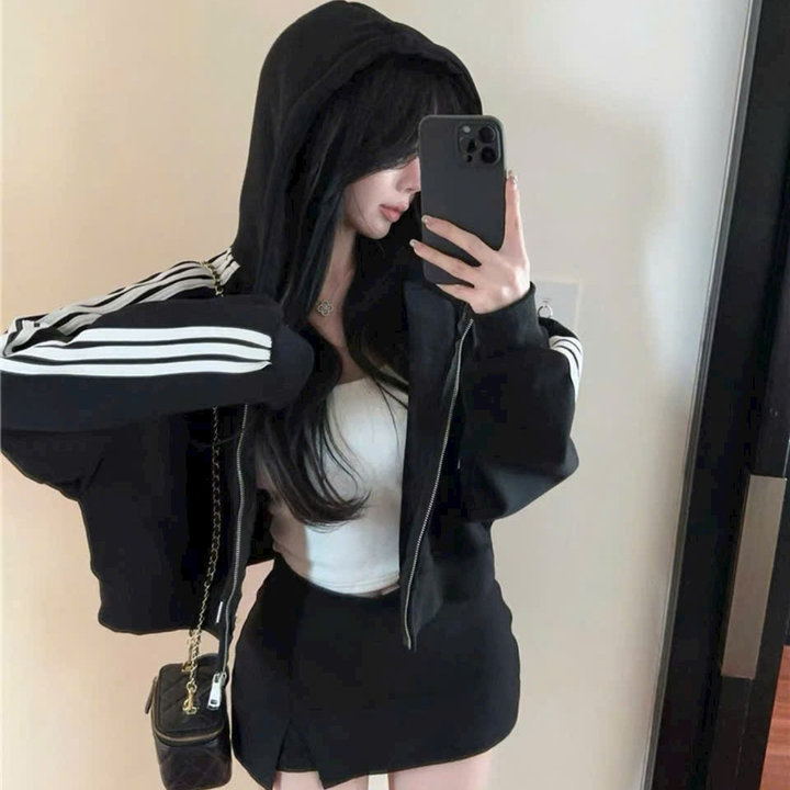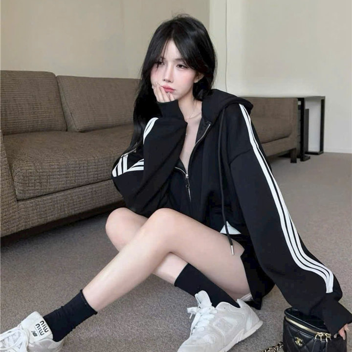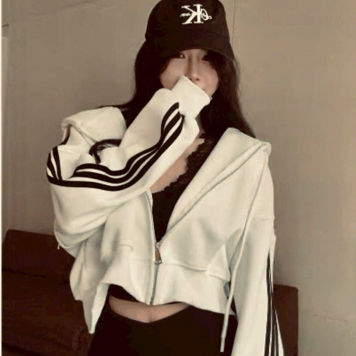 Áo Khoác Chống Nắng Nỉ Nữ Dáng Lửng Phối 3 Sọc Mẫu Mới Nón Rộng , Siêu Dày Dặn Hàng Đẹp