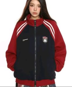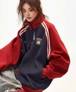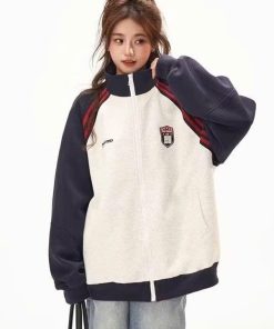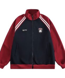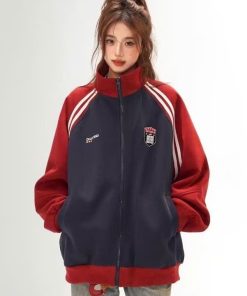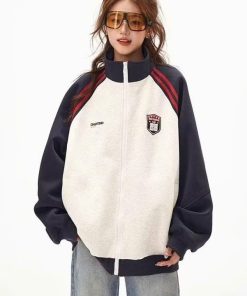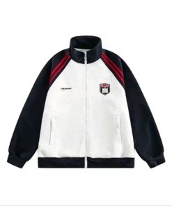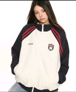 Tên sản phẩm: ÁO KHOÁC CỔ CAO VẢI NỈ DÀY DẶN PHỐI SỌC VIỀN NÁCH FORM RỘNG IN LOGO NỔI SỐ 26 UNISEX NAM NỮ TP75 – GOLDEN DREAM