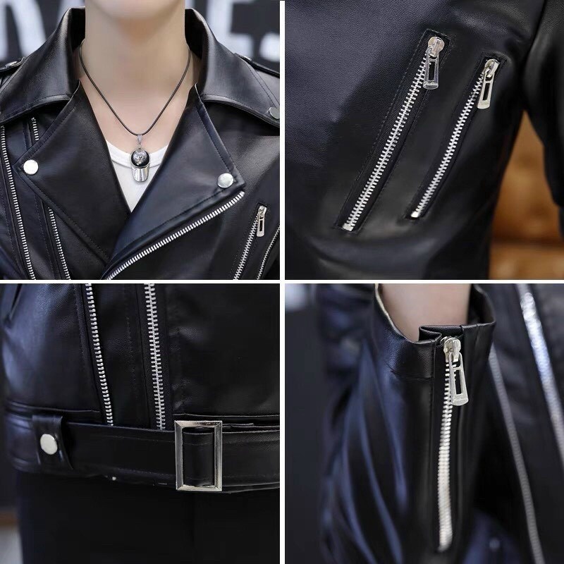 – Áo khoác da nam kiểu giả vest, thiết kế dây khóa kéo chính lệch sang bên ấn tượng thời trang, có vòng khóa phía dưới áo giúp rút vòng eo ôm sát người khi cần thiết.