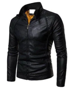 Áo da màu đen lót lông màu ngẫu nhiên mang lại nét mạnh mẽ, cá tinh và phong cách cho các chàng trai