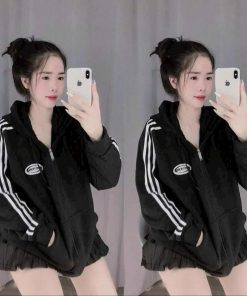 Áo Khoác Dáng Đẹp Nữ Siêu Xinh Có Phối 3 Sọc Viền Tay Áo Chất Vải Nỉ Dày Mịn Kèm Nón Trùm Đầu Đẹp Hàng Luôn Hot Trend-HTM FASHION