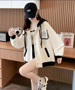Tên sản phẩm: ÁO KHOÁC DÂY KÉO NỮ VẢI NỈ NGOẠI PHỐI TÚI NGỰC THÊU CHỮ R VIỀN DÂY UT40 – PHƯƠNG STORE