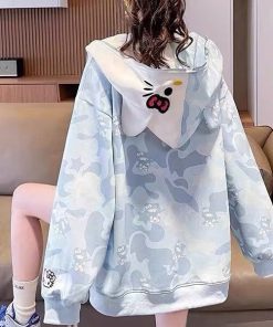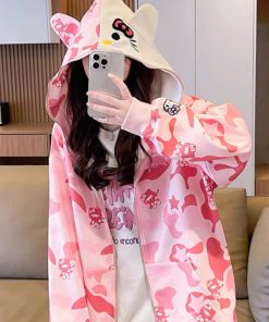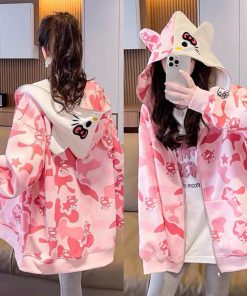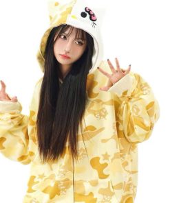 Tên sản phẩm: ÁO KHOÁC DÂY KÉO VẢI NỈ BÔNG MỎNG MỀM MỊN IN LOANG PHỐI TAI MÈO XINH XẮN CHO CÁC NÀNG TP56 – GOLDEN DREAM