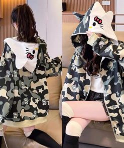 Tên sản phẩm: ÁO KHOÁC DÂY KÉO VẢI NỈ BÔNG MỎNG MỀM MỊN IN LOANG PHỐI TAI MÈO XINH XẮN CHO CÁC NÀNG TP56 – GOLDEN DREAM