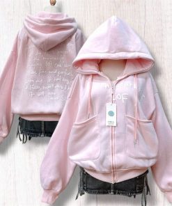 Tên sản phẩm: ÁO KHOÁC NỮ VẢI NỈ NGOẠI IN CHỮ SỌC TAY VÀ MŨ 2 LỚP CÓ TÚI TRONG TP566 – GOLDEN DREAM