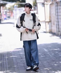 Tên sản phẩm: ÁO KHOÁC DÙ 2 LỚP FORM RỘNG PHỐI MÀU IN CHỮ NEWWSTARF MẪU MỚI TP75 – GOLDEN DREAM