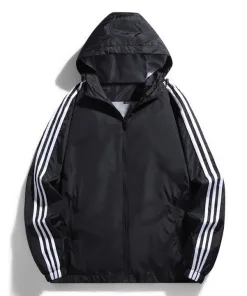 ÁO KHOÁC DÙ 2 LỚP PHỐI 3 SỌC CÓ NÓN ( LÓT LƯỚI) – HTM FASHION