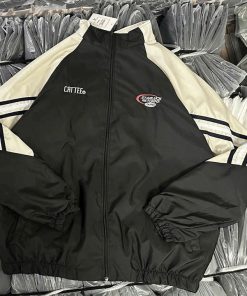 Tên sản phẩm: ÁO KHOÁC DÙ 2 LỚP UNISEX NAM NỮ FORM RỘNG THÊU CHỮ CATTEE PHỐI SỌC TAY TP302 – GOLDEN DREAM