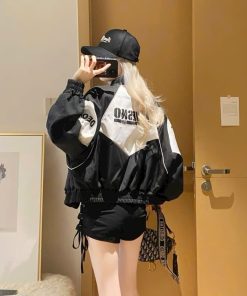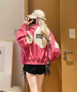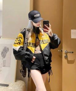 Áo Khoác Dù Bóng Chày Phong Cách Thời Trang Đường Phố In Nhiều Chữ Trên Áo Siêu Đáng Yêu Có Nút Bấm Trên Cổ Hàng Hot Trend-HTM FASHION