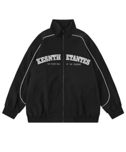 Tên sản phẩm: ÁO KHOÁC DÙ CỔ CAO 2 LỚP PHỐI SỌC VIỀN TAY IN CHỮ KESN UNISEX NAM NỮ TP54 – GOLDEN DREAM