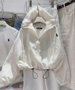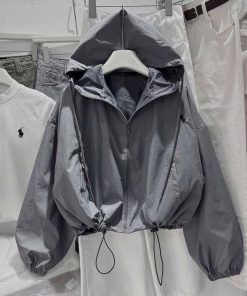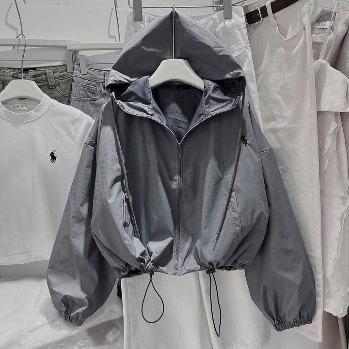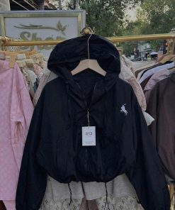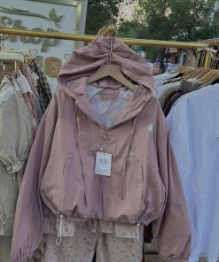 Áo khoác gió nữ dáng rộng form bomber hoodie chất dù cao cấp siêu nhẹ, chống thấm nước nhẹ, chống gió tốt – lựa chọn hoàn hảo cho những ngày thời tiết se lạnh hoặc mưa phùn. Thiết kế mũ trùm rộng tiện lợi, dây rút bo gấu và cổ tay giúp giữ ấm tối ưu, đồng thời tạo điểm nhấn thời trang năng động.
