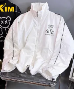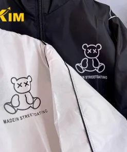- Áo khoác dù với họa tiết hình gấu dễ thương.
