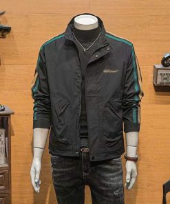 Áo khoác nam tông màu đen huyền bí kết hợp với sọc xanh phối vàng chạy dọc tay áo, tạo điểm nhấn thể thao mạnh mẽ. Với form dáng chuẩn men, ôm gọn vừa vặn, chiếc áo này giúp các chàng trai trông lịch lãm, phong trần và cực kỳ cá tính.