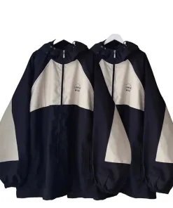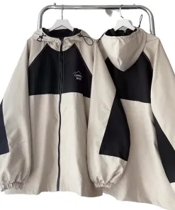 Tên sản phẩm: ÁO KHOÁC DÙ NAM NỮ PHỐI NÓN DÂY RÚT TIỆN LỢI IN CHỮ CAMPING WHAT – GOLDEN DREAM