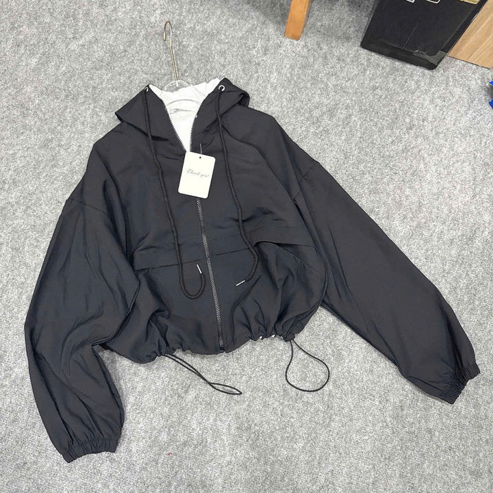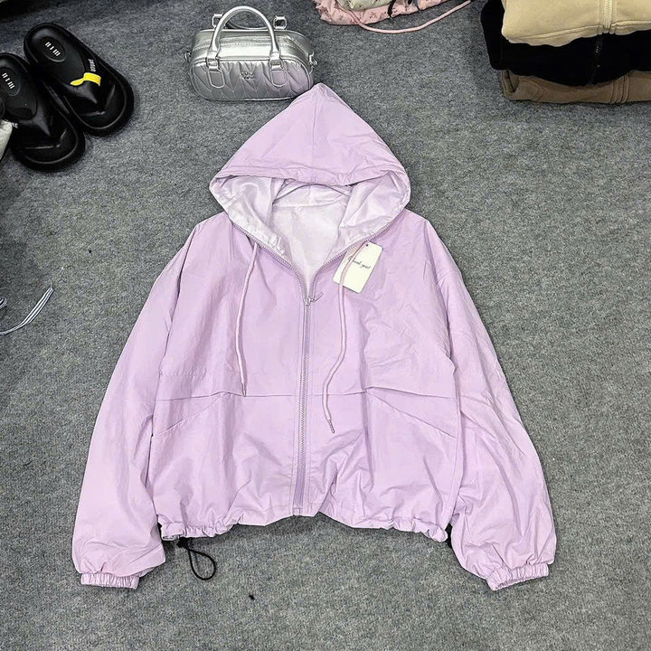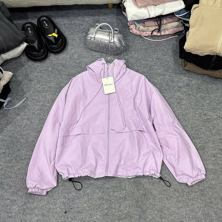 Tên sản phẩm: ÁO KHOÁC DÙ NHĂN 2 LỚP TRƠN NỮ CÓ MŨ PHỐI DÂY RÚT LAI SIÊU XINH TP38 – GOLDEN DREAM