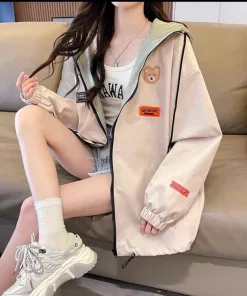 Tên sản phẩm: ÁO KHOÁC DÙ NỮ ÉP 3 LỚP SIÊU XỊN THÊU HÌNH GẤU XINH XẮN LÓT GIỐNG HÌNH CHO CÁC NÀNG FORM RỘNG UT49 – GOLDEN DREAM