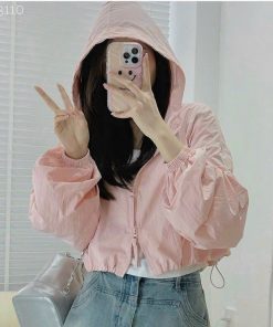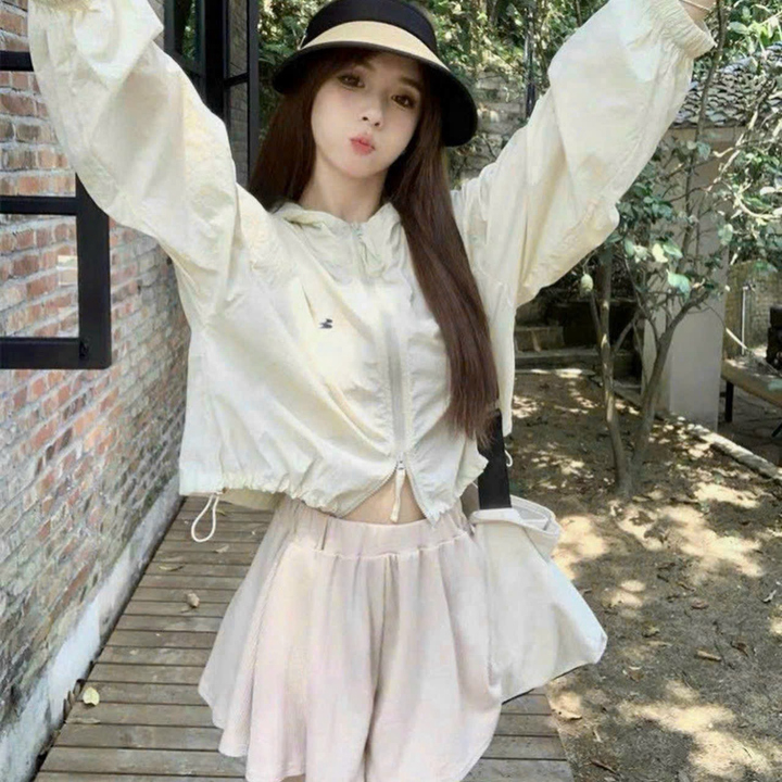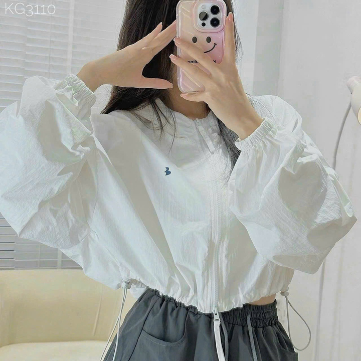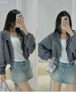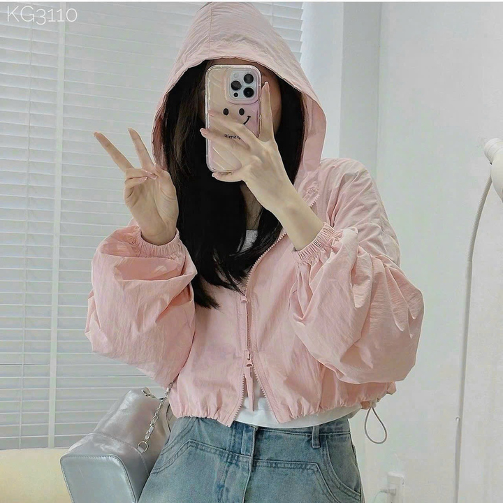 Áo Khoác Dù Trợt Nước Nữ Phối Kiểu Dáng Lửng Có kèm Mũ Chống Nắng Cực Tốt Khóa Kéo Zíp Áo Đẹp Hàng Hot trend-HTM FASHION