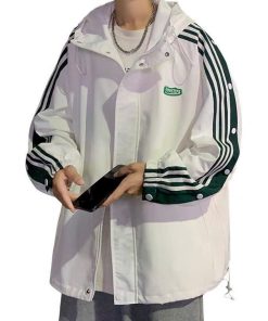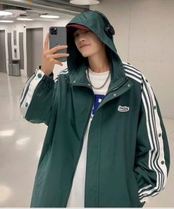 Tên sản phẩm: ÁO KHOÁC DÙ UNISEX NAM NỮ PHỐI SỌC TAY CÓ CÚC VÀ DÂY RÚT GẤU UT434 – PHƯƠNG STORE