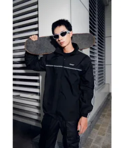 – Form áo rộng rãi, có phiền phản quang, sọc khác màu ở tay mang lại vẻ thể thao, phong cách cho người mặc