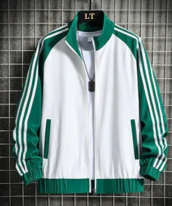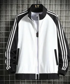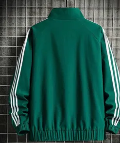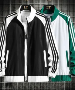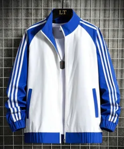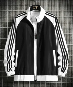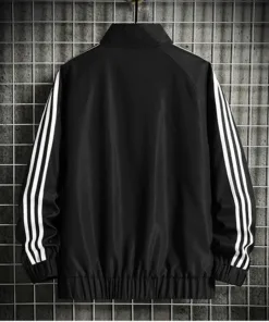 ÁO KHOÁC GIÓ NHẸ 2 LỚP, ÁO KHOÁC NAM NỮ CỔ TRỤ PHỐI 3 SỌC TAY THỂ THAO CAO CẤP – HTM FASHION