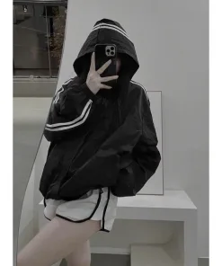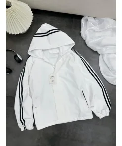 ÁO KHOÁC GIÓ PHỐI 2 SỌC VIỀN TAY VIỀN MŨ PHONG CÁCH THỂ THAO