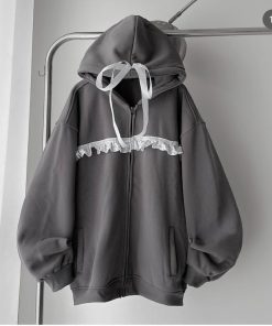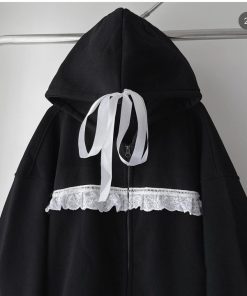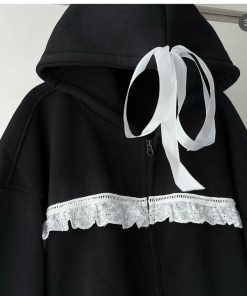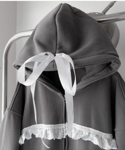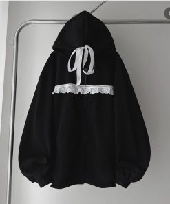 ÁO KHOÁC HOODIE CỘT NƠ MŨ KHÓA ZÍP CÁ TÍNH- HTM FASHION