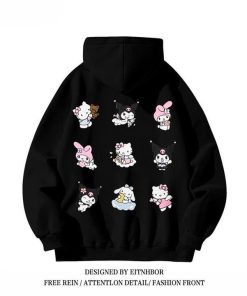 Áo hoodie Sanrio Style Cute Characters là item thời trang đang “làm mưa làm gió” trong giới trẻ nhờ thiết kế đáng yêu, trẻ trung và cực kỳ nổi bật. Với những hình thêu nhân vật hoạt hình dễ thương mang phong cách Nhật Bản, chiếc áo đem lại vẻ ngoài vừa ngọt ngào vừa cá tính, phù hợp với mọi phong cách từ năng động – học đường – streetwear cho đến đi chơi, chụp ảnh sống ảo.