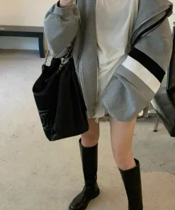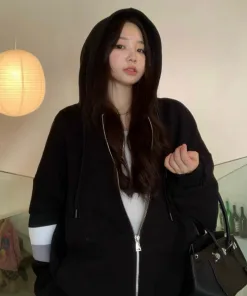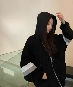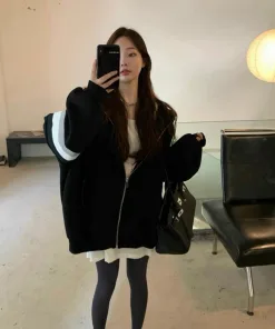 Áo Khoác Hoodie Khóa Kéo Form Rộng Và Cói Cánh Tay Phồng Phong Cách Hàn Áo Có Sọc Viền Tay Chất Vải Dày Áo Đẹp Hàng Hot Trend-HTM FASHION
