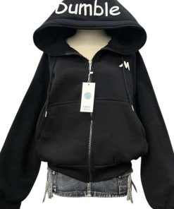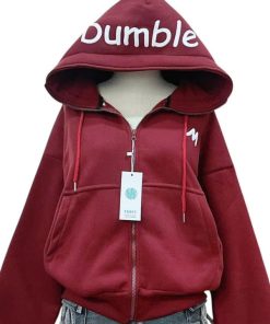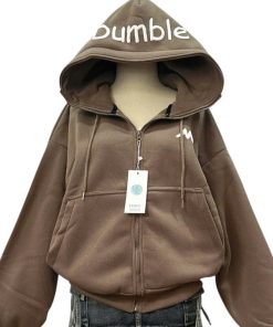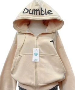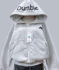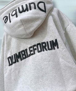 Điểm nhấn nổi bật là dòng chữ “Dumble” to bản trên mũ áo và logo chữ “M” nhỏ phía trước ngực – tạo nên phong cách trẻ trung, hiện đại.
