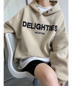 Áo khoác Hoodie Nỉ Nam Nữ Có In Chữ DELIGHTIES Bao Sắc Nét Với Chất Liệu Vải Nỉ Siêu Dày Dặn Và Mềm Mịn Ở Cổ Có Nút Bấm Cao Cấp Áo Mẫu Mới Áo Đẹp Hàng Hot Trend-HTM FASHION