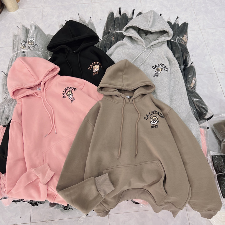 Áo hoodie nỉ unisex form rộng CALSTATE 1849 thêu gấu, phong cách Hàn Quốc – Basic mà cực dễ phối