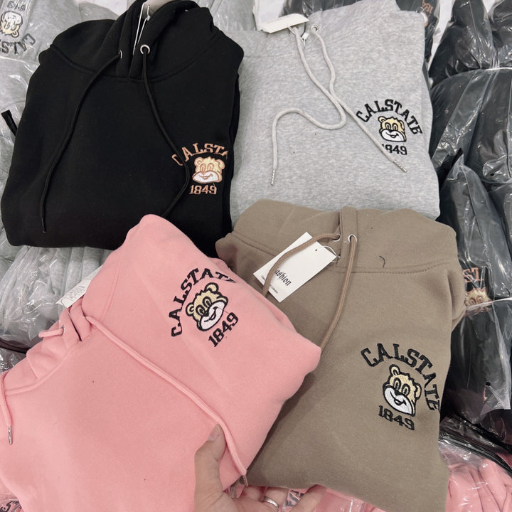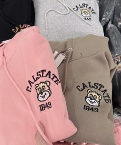 Logo “CALSTATE 1849” thêu nổi cùng hình chú gấu dễ thương – tạo điểm nhấn nhẹ nhàng nhưng cực hút mắt.