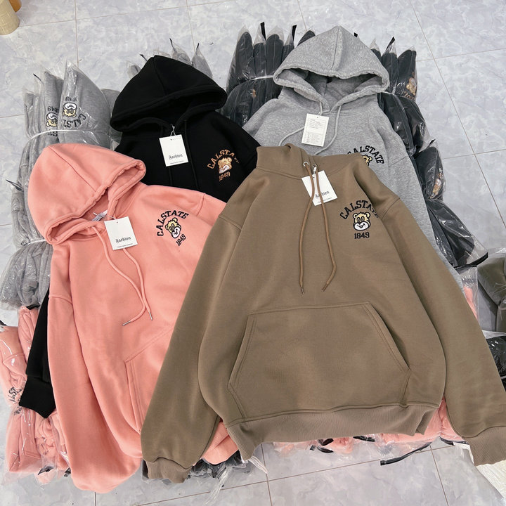 Mang phong cách basic hiện đại pha chút đáng yêu, chiếc áo hoodie CALSTATE 1849 thêu hình gấu đang là item “hot hit” được giới trẻ yêu thích trong mùa thu đông. Với chất nỉ cotton dày dặn, form rộng unisex, áo mang lại cảm giác vừa ấm áp vừa năng động, phù hợp cho cả nam và nữ.