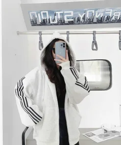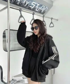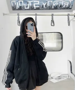 Áo Khoác Hoodie Nỉ Nam Nữ Với Chất Dáng Form Rộng Có Dây Kéo Sọc Tay Unisex Nỉ Ngoại Chất Vải Dày Dặn Áo Đẹp Hàng Hot Trend-HTM FASHION