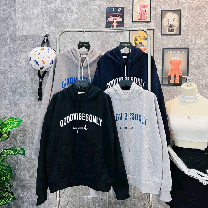 Áo Khoác Hoodie Nỉ Ngoại Nam Nữ Có In Chữ GOODVIBESONLY Siêu Đẹp Chất Vải Dày Dặn Có Mũ Kèm Dây Rút Siêu Tiện Hàng Hot Trend-HTM FASHION