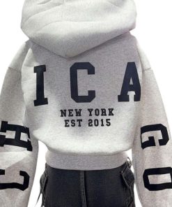 Điểm nhấn: In nổi bật dòng chữ CHICAGO chạy dọc hai tay và lưng áo kết hợp logo NEW YORK EST 2015, mang vibes cá tính, trẻ trung, cực ngầu.