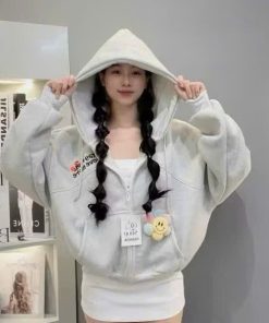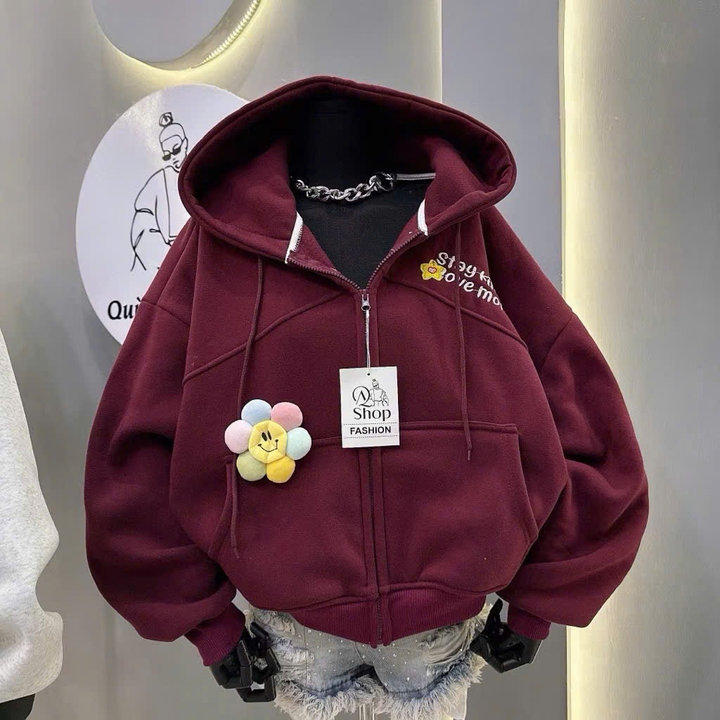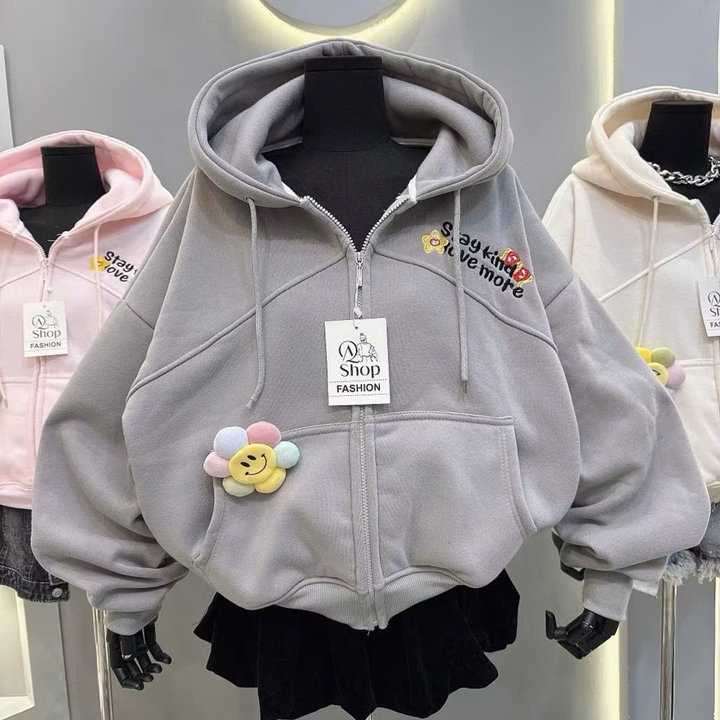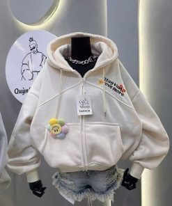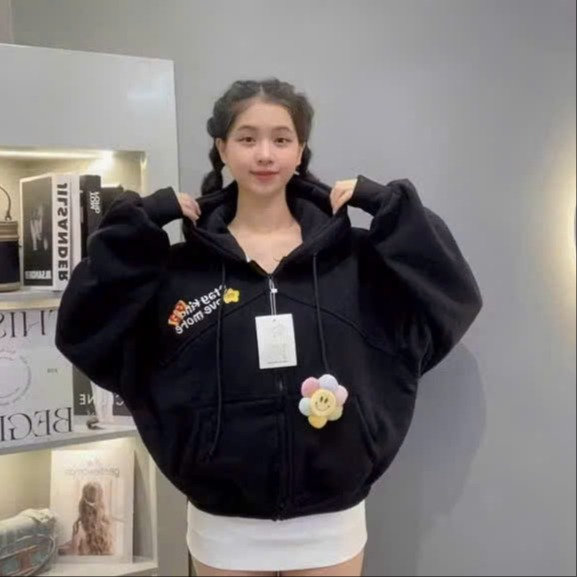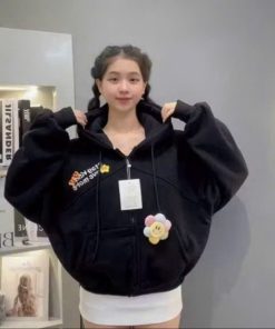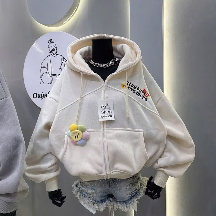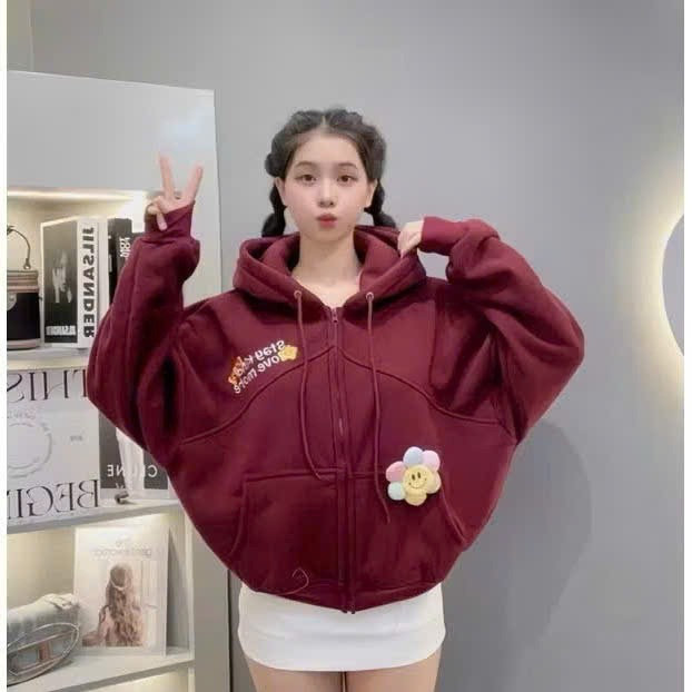 Áo khoác nỉ có mũ form rộng kiểu dáng unisex, phù hợp cho cả nam và nữ. Mẫu áo được thiết kế phong cách Hàn Quốc trẻ trung, năng động với điểm nhấn là gấu bông nhỏ đính trước ngực cực kỳ dễ thương. Áo có khóa kéo tiện lợi, giúp bạn dễ dàng mặc và phối đồ trong nhiều hoàn cảnh khác nhau – đi học, đi chơi, dạo phố hay du lịch.