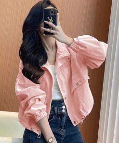 Áo có khóa kéo kết hợp nút bấm tiện lợi, phần cổ đứng giúp giữ ấm và che nắng tốt. Bo chun ở tay áo và gấu áo tạo hiệu ứng phồng nhẹ, vừa che khuyết điểm vừa tạo điểm nhấn thời trang. Hai túi nắp trước vừa tăng tính thẩm mỹ vừa giúp cất giữ vật dụng nhỏ gọn.