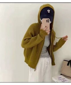 ÁO KHOÁC LEN DÀI TAY CÓ MŨ, 2 KHÓA KÉO PHONG CÁCH HÀN QUỐC MẪU MỚI