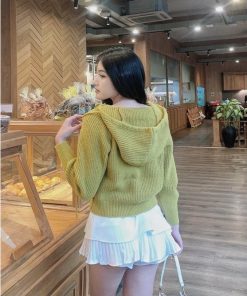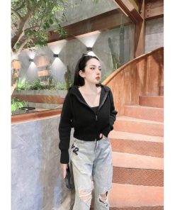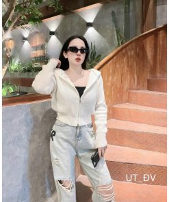 – Áo được thiết kế form rộng, dáng croptop với khóa kéo mượt mà, tiện lợi. Bên cạnh đó, áo cũng có mũ trùm đầu, có dây rút cực xinh