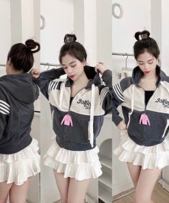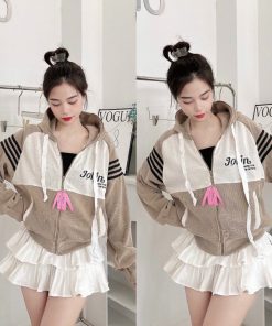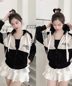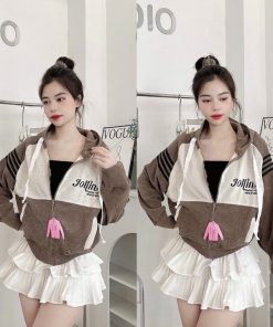 áo Khoác Nhung Gân Nữ Có Nón Thêu Joilin Dáng Lửng -htm Fashion